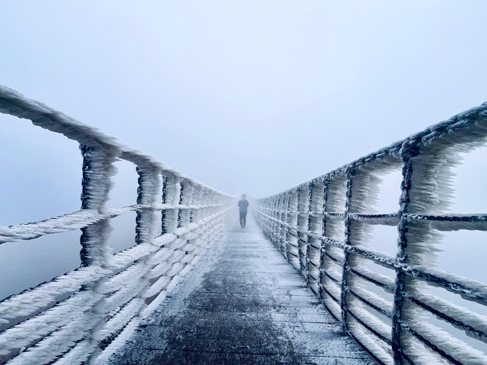 12月25日清晨,云冰山迎来漫山遍野的冰挂奇观。山间枝叶凝霜裹素,栈道栏杆银装覆冰,千年苔藓披上了洁白银衣,风车在云海与冰雾交织间若隐若现,宛如童话世界。据悉,毗邻岭南的云冰山,是藏在湘粤边界的冰雪秘境,每年都吸引大批广东游客专程前来,赴一场冰雪之约。