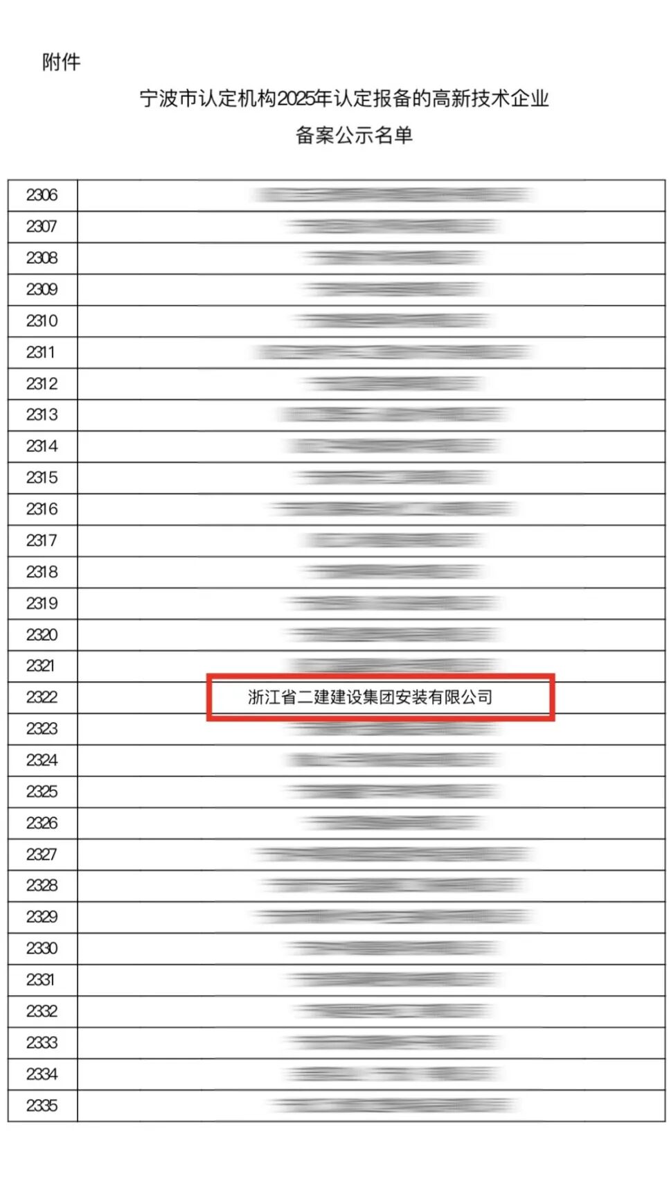 近日,全国高新技术企业认定管理工作领导小组办公室发布了《浙江省认定机构2025年认定报备的高新技术企业备案名单》和《宁波市认定机构2025年认定报备的高新技术企业备案公示名单》的通知,集团所属浙江二建安装有限公司、浙江浙建九建工程建设有限公司(前身为浙江省二建钢结构有限公司)、浙江浙建钢结构有限公司三家单位成功入选。
