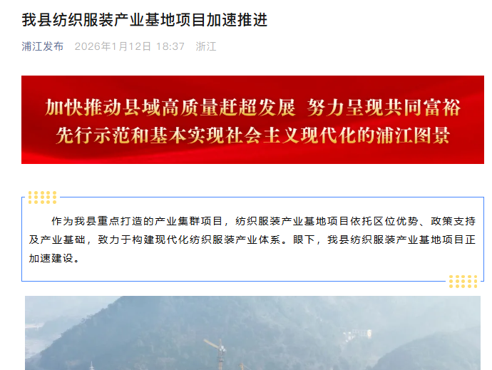新年伊始,集团所属浙江建工浦江县纺织服装产业基地项目全面进入施工攻坚阶段,项目团队以“开工即决战、起步即冲刺”的奋进姿态,统筹推进施工组织、资源配置和节点管控,各项建设任务高效展开,项目建设呈现稳步提速态势,用实干实绩吹响新年“开门红”的冲锋号角。相关建设情况获浦江县政府官方公众号《浦江发布》关注报道。